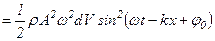 Нехай в деякому середовищі поширюється в додатному напрямку осі OX плоска хвиля Визначимо зміну енергії малого об’єму dV пружного середовища, пов’язану з поширенням у середовищі плоскої хвилі. Оскільки об’єм dV дуже малий, то можна вважати, що всі частинки середовища, які містяться в цьому об’ємі, коливаються в одній фазі, так що їх швидкості однакові і