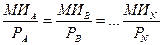 МИ – гранична корисність благ (А, В, …N) Р – ціна благ (А, В, …N)