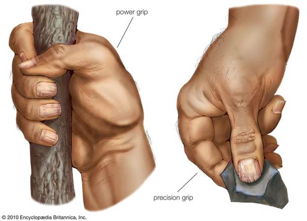 Кисть человека абсолютно уникальна. Ее по праву можно назвать чудом дизаийна. Она способна на два сжатия, которые не под силу обезьянам, – точное и силовое. Шимпанзе не может произвести сильное сжатие. Точное хватание используется при движениях, требующих четкости и тщательности. Интересно, что эти два вида схватывания являются уникальным своийством кисти человека и в природе больше ни у кого не встречаются. Почему именно у нас это «исключение»?