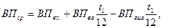 де ВПвих – вихідна потужність підприємства на кінець року; ВПвх – вхідна потужність на початок року; ВПорг-техн – зміна потужності за рахунок організаційно-технічних заходів; ВПвв – підвищення потужності за рахунок введення в експлуатацію нових обє’ктів основних фондів, нового будівництва і реконструкції; ВПн-а – зміна виробничої потужності за рахунок зміни номенклатури і асортименту продукції; ВПвив – зниження виробничої потужності в результаті виведення з експлуатації основних фондів. У зв’язку з мінливістю величини виробничої потужності протягом року виникає необхідність обчислення її середньорічного значення: