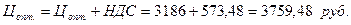 В таблице 3.4 при определении цены условной услуги расчет ведется следующим образом: Оптовая цена = С+П где С – себестоимость единицы изделия; П – прибыль, предусмотренная в цене. Прибыль в данном примере составляет 29% от себестоимости (П=R*C Для продажи цена должна, включать, как видно из рисунка 3.1, косвенный налог – НДС, его нахождение по формуле: Отпускная цена, предъявленная покупателю:
