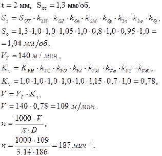 Режимы резания на остальные обрабатываемые поверхности назначим по справочнику [6] и полученные результаты сведём в таблицу (таблицу 3.3) Поверхность 3 Черновая токарная