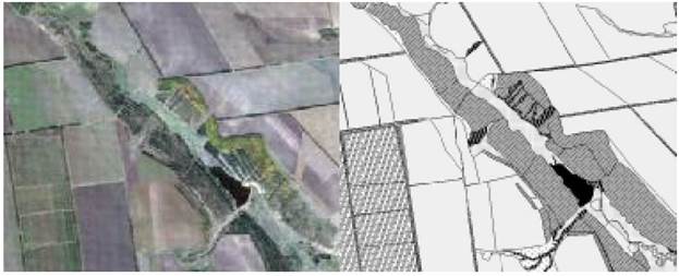 Рис.1. Приклад формування меж обстежуваних ділянок сільськогосподарських підприємств за космічним зображенням.