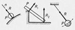 На мал.(малюнок) 2 показані гладкий циліндровий шарнір (підшипник), для якого невідомі дві (R x і R в ), і гладкий сферичний шарнір, для якого невідомі всі три (R x , R в , R z ) складові Р. с. Для шорсткої поверхні Р. с. має дві складові: нормальну і дотичну, звану силоміць тертя. В загальному випадку при вирішенні завдань динаміки користуються принципом освобождаємості, тобто сковану механічну систему розглядають як вільну, прикладаючи до її крапок деякі сили, підібрані так, щоб у весь час руху системи виконувалися умови, що накладаються на неї зв'язками; ці сили і називаються Р. с.