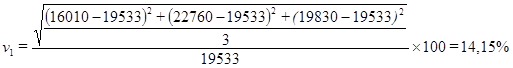 Аналогично произведем расчеты значений коэффициентов вариации для других позиций и внесем их в таблицу 7. Таблица 7 – Расчет дисперсии и коэффициента вариации
