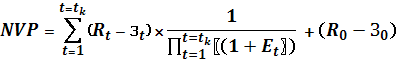где Rt - результат, достигаемый на t -ом шаге расчета; Зt - затраты, осуществляемые на t -ом шаге расчета; (Rt - Зt) = Эt - эффект, полученный на t -ом шаге расчета; t = tk - горизонт расчета (последний год, квартал, месяц расчетного периода, на котором производится ликвидация объекта. Имеется в виду, что в конце шага tk должна учитываться условная или реальная реализация активов). Если норма дисконта меняется во времени, то
