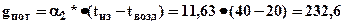 где: tиз- температура наружной поверхности теплоизоляции, принимается равной 40°С.