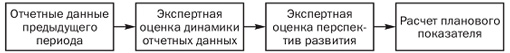 Рис. 1. Нормативный метод планирования Расчетно-аналитический метод планирования Расчетно-аналитический метод состоит в том, что на основе анализа достигнутой величины финансового показателя, принимаемого за базу, и индексов его изменения в плановом периоде рассчитывается плановая величина этого показателя. Данный метод финансового планирования широко применяется в тех случаях, когда отсутствуют технико-экономические нормативы, а взаимосвязь между показателями может быть установлена косвенно, на основе анализа их динамики и связей. В основе этого метода лежит экспертная оценка.