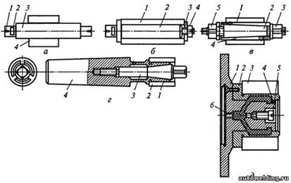 Рис. 4.17. Токарные оправки: Для облегчения условий труда рабочих при закреплении заготовок на станки устанавливают механизированные приводы: пневматические, гидравлические, электрические и магнитные.
