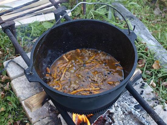 добавляем крутого кипятка, чтобы жидкость в казане едва покрывало его содержимое