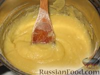 Готовим крем для Наполеона. 2-3 ст. ложки муки смешиваем с 1, 5 стакана сахара и засыпаем в кипящее молоко (0, 5 л). Вымешиваем, чтобы загустело, и даем остыть. Потом взбиваем эту массу с 300 г масла.
