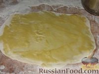 Каждую часть тонко раскатать и намазать 1-м тестом.