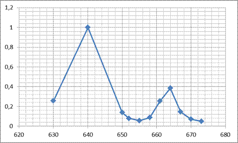 Рисунок 6 к таблице 6 8.3.Построили зависимость нормированной мощности qn от частоты F. По этой зависимости определили полосу пропускания антенны по уровню половинной мощности. Для определения полосы пропускания DF на построенной зависимости отметили два значения частоты F1 и F2, соответственно больше и меньше Fрез. Величина DF определится по формулеDF = F1 - F2