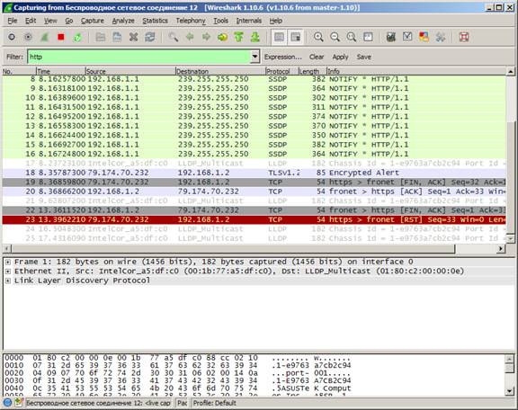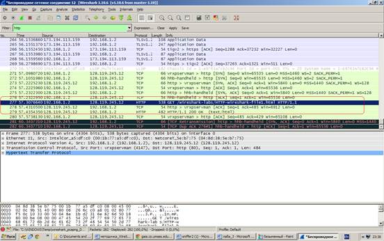 Зробивши фільтрацію для вибору пакетів http (рис. 10), отримаємо (рис. 15):