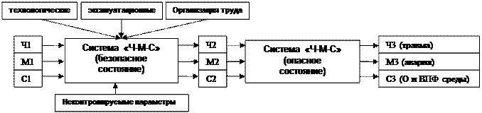 Рис. 1. Схема формирования опасной ситуации в системе «Ч-М-С»