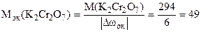 д) Эквивалентная масса окислителя и восстановителя определяются делением молярной массы на изменение степени окисления в соответствующей реакции на 1моль. Пример 14. Определить эквивалентные массы окислителя и восстановителя в реакции: +6 +4 +3 +6 K2Cr2O7 + 3Na2SO3 + 4H2SO4 = Cr2(SO4)3 + 3Na2SO4 + K2SO4 + 4H2O.