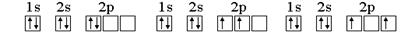 Например, рассмотрим электронную конфигурацию атома углерода. Порядковый номер атома равен 6. Это означает, что в атоме 6 электронов и они расположены на 2-х квантовых уровнях (атом углерода находится во втором периоде), т.е. 1s22s22p2. Графически 2р-подуровень можно изобразить тремя способами: