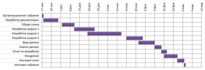 Для построения подобного рода диаграмм можно воспользоваться как специальным программным обеспечением (Microsoft Project), так и гораздо более доступным Microsoft Excel. В нем нам придется использовать для этого особым образом настроенную линейчатую диаграмму с накоплением (Stacked Bar Chart):