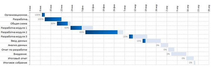 Cоздание проектной диаграммы Ганта в Excel закончено.