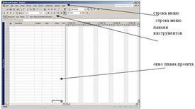 Основные элементы интерфейса программы MS Project представлены на рисунке. Для создания нового плана проекта необходимо в меню File (Файл) выбрать команду New (Новый)