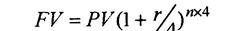 Для ежеквартального начисления процентов формула будущей стоимости имеет вид: