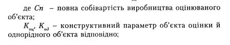 3. расчет полной себестоимости объекта оценки. Для этого в себестоимость однородного объекта вносится корректирование, учитывающее расхождение в конструктивных параметрах объектов.