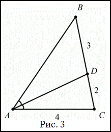 1. Теорема (Свойство биссектрисы). Биссектриса внутреннего угла треугольника делит противоположную сторону в отношении, равном отношению двух прилежащих сторон (рис. 2):