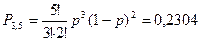 Окончательно, получаем вероятность не менее трех попаданий из пяти выстрелов: