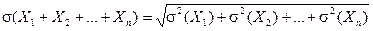 Теорема. Среднее квадратичное отклонение суммы конечного числа взаимно независимых случайных величин равно квадратному корню из суммы квадратов средних квадратических отклонений этих величин.