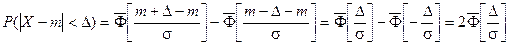 При рассмотрении нормального закона распределения выделяется важный частный случай, известный как правило трех сигм. Запишем вероятность того, что отклонение нормально распределенной случайной величины от математического ожидания меньше заданной величины D: