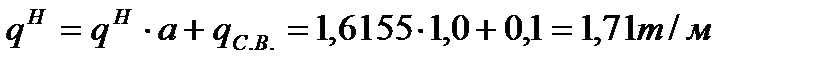Нагрузка на один погонный метр: а) нормативная: где б) расчётная: где γ f – коэффициент надежности по нагрузке по СНиП 2.01.07-85