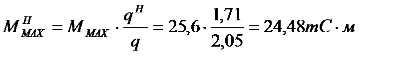 Максимальный нормативный изгибающий момент: