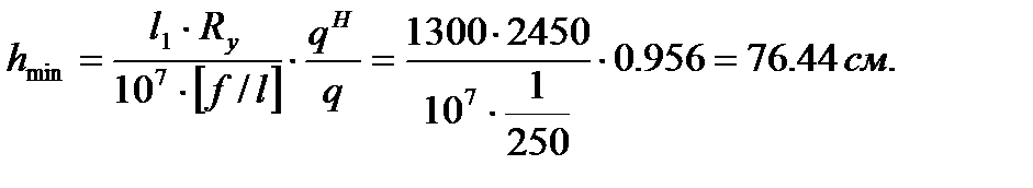 Для балки переменного сечения Минимальная высота балки (при которой балка отвечает требованиям жесткости при полном использовании прочностных свойств материала):