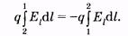 где dl — элементарное перемещение; El — проекция вектора Пусть заряд q переместился по замкнутой траектории 1-а-2-б-1 (рис. 12.1). Так как поле электростатическое, то положение зарядов, создающих поле, при этом не изменилось, и потенциальная энергия, зависящая от их взаимного положения, осталась прежней. Поэтому работа сил электростатического поля по перемещению заряда по замкнутой траектории равна нулю: