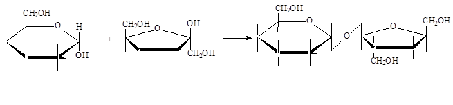 В мальтозе гликозидная связь образуется за счет гидроксильной группы, находящейся у первого атома углерода одной молекулы глюкозы, и гидроксильной группы, расположенной у четвертого атома углерода второй молекулы глюкозы. Поскольку полуацетальный гидроксил у второй молекулы глюкозы остается несвязанным и кольцо может размыкаться с образованием свободной карбонильной группы, мальтоза является восстанавливающим сахаром. Молочный сахар (лактоза) состоит из остатков глюкозы и галактозы, соединенных 1, 4-гликозидной связью, также является восстанавливающим сахаром.