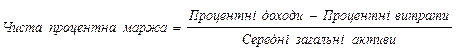 За допомогою показника чистої процентної маржі можна проаналізувати здатність банку одержувати прибуток у вигляді доходу від процентної різниці, як процент до загальних активів: