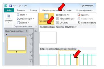 - На вкладке Макет страницы в разделе Макет выбрать список Направляющие, а затем пиктограмму три столбца с заголовком (рис. 3).