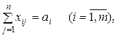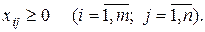 и выполняются ограничения: · по имеющимся трудовым ресурсам · по имеющимся видам площадей · по имеющимся видам издержек обращения · по объему товарооборота · по выполнению плана ассортимента товаров Решая полученную модель как задачу линейного программирования, получаем оптимальный план реализации товаров где В модели планирования хозяйственной деятельности предприятия можно использовать критерий товарооборота с учетом ограничений на ресурсы и ассортимент реализуемых товаров. Общая постановка транспортной задачи состоит в определении оптимального плана перевозок некоторого однородного груза из m пунктов отправления A 1, A 2,..., Аm в n пунктов назначения В 1, В 2,..., Вn. При этом в качестве критерия оптимальности обычно берется либо минимальная стоимость перевозок всего груза, либо минимальное время его доставки [1, 14]. Рассмотрим транспортную задачу, в качестве критерия оптимальности которой взята минимальная стоимость перевозок всего груза. Обозначим через cij тарифы перевозки единицы груза из i -го пункта отправления в j -й пункт назначения, через аi - запасы груза в i -м пункте отправления, через bj - потребности в грузе в j -м пункте назначения, а через хij - количество единиц груза, перевозимого из i -го пункта отправления в j -й пункт назначения. Тогда математическая постановка задачи состоит в определении минимального значения функции