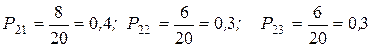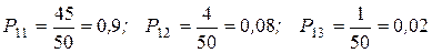 Этот метод аналогичен методу определения спроса на основе анкетных опросов. Рассмотрим это на примере. Пример 5.2. Пусть имеются три конкурирующих изделия С целью определения спроса на эти изделия произведен опрос 100 человек. Оказалось, что изделие Предположим, что поведение покупателей в каждый следующий месяц обусловлено только их поведением в предыдущий месяц (таким образом, исследуется простая цепь Маркова). По истечении месяца оказалось, что из 50 человек, покупавших изделие Решение. Если