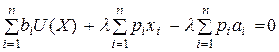 Решение находим методом Лагранжа. Приравняв нулю частные производные функции Лагранжа по переменным хi, получаем для всех i: