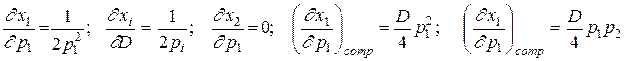 Первое слагаемое в правой части описывает действие эффекта замены, второе - действие эффекта дохода, выраженное в тех же единицах измерения (множитель Уравнение Слуцкого может рассматриваться как при разных, так и при совпадающих i и j. Из первых двух свойств функции полезности потребителя следует, что Проверим уравнение Слуцкого для рассмотренной выше задачи потребительского выбора с функцией полезности Было получено: