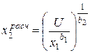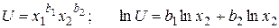 U = 18; P 1 = 5; P 2 = 10, 3; D = 100. Решение. В нашей задаче продукты х1 и х 2 являются взаимозаменяемыми и взаимодополняемыми, т.е. функция смешанная. Поэтому можно воспользоваться моделью неоклассической функции полезности, которая имеет вид Чтобы убедиться в правильности предположения о форме связи, следует графически изобразить изучаемую зависимость в системе координат по данным о потреблении продуктов х1 и х 2. По виду графика можно предположить, что зависимость между x 1 и x 2 имеет вид Решение задачи по построению кривой безразличия заключается в определении параметров функции b 1 и b 2. Параметры кривой безразличия b 1 и b 2 отражают степень полезности каждого из продуктов x 1 и x 2. Определив параметры b 1 и b 2, зная одну из переменных - количество потребления продукта x 1, всегда можно определить вторую переменную x 2 так, чтобы обеспечить максимум полезности от потребления продуктов