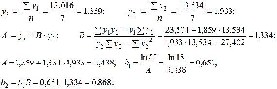 Полученные функции При расчете величин A и B можно воспользоваться таблицей вспомогательных расчетов. Ниже приводятся расчеты для имеющихся данных.