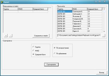 Рисунок 6 – Экранное отображение отсортированного файла Таблицы следует нумеровать арабскими цифрами сквозной нумерацией. Название следует помещать над таблицей слева, без абзацного отступа в одну строку с ее номером через тире. На все таблицы документа должны быть приведены ссылки в тексте документа, при ссылке следует писать слово " таблица" с указанием ее номера. Заголовки граф и строк таблицы следует писать с прописной буквы, а подзаголовки граф — со строчной буквы, если они составляют одно предложение с заголовком, или с прописной буквы, если они имеют самостоятельное значение. В конце заголовков и подзаголовков таблиц точки не ставят. Заголовки и подзаголовки граф указывают в единственном числе. Таблицы слева, справа и снизу ограничивают линиями. Допускается применять размер шрифта в таблице меньший, чем в тексте. Разделять заголовки и подзаголовки боковика и граф диагональными линиями не допускается. Горизонтальные и вертикальные линии, разграничивающие строки таблицы, допускается не проводить. Заголовки граф, как правило, записывают параллельно строкам таблицы. При необходимости допускается перпендикулярное расположение заголовков граф. Головка таблицы должна быть отделена линией от остальной части таблицы. Высота строк таблицы должна быть не менее 8 мм. Допускается помещать таблицу вдоль длинной стороны листа документа. Таблицу с большим количеством строк допускается переносить на другой лист. При переносе части таблицы на другой лист слово «Таблица» и номер ее указывают один раз над первой частью таблицы, над другими частями пишут слово «Продолжение» и указывают номер таблицы, например: «Продолжение таблицы 1». Пример: Таблица 2 – Шпиличое соединение В миллиметрах