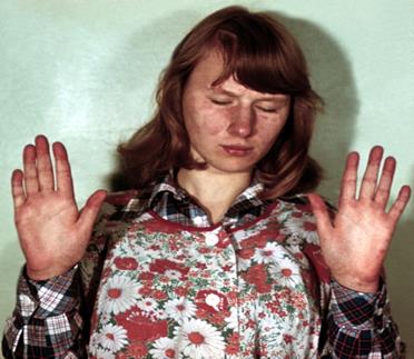 Больная М., 18 лет, госпитализирована в клинику с диагнозом инфекционного эндокардита. Заболевание началось после купания в реке и пребывания на солнце. В начале появилась боль в горле при глотании и повышение температуры до 39° С, затем боль и припухлость в коленных суставах, боль в мышцах, сильная общая слабость. Госпитализирована в ЦРБ, где проводилось лечение антибиотиками без эффекта. При осмотре: состояние тяжелое. Кожные покровы бледные, яркий румянец на щеках и спинке носа, участки облысения на голове. Увеличены подчелюстные и шейные лимфоузлы. Коленные и межфаланговые суставы пальцев рук отечны, движения в них болезненны.