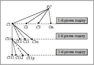 Найбільш суттєвими і складними питаннями, що постають при використанні ієрархічного методу класифікації, є вибір системи ознак, що стануть основою поділу, а також їх послідовність. Iєрархічний метод класифікації характеризується кількістю рівнів (ступенів) класифікації, глибиною, ємністю і гнучкістю. Кількість рівнів визначає глибину класифікації, яка встановлюється залежно від міри необхідної конкретизації угруповань і кількості ознак, які беруть участь у розв’язуванні відповідних задач. Від глибини класифікації та кількості створених на кожному рівні угруповань залежить ємність. Як правило, найбільшу кількість послідовних угруповань, на які може поділятися попереднє угруповання на кожному рівні класифікації, беруть сталою або для всієї класифікації, або для даного рівня. На рис. 3. для прикладу наведена схема ієрархічної структури кодових позначень класифікатора професій. Ознаки класифікації розташовані в такій послідовності: — рівень освіти (перший рівень класифікації — розділи професій); — спеціалізація (другий, третій, четвертий рівні класифікації — підрозділи, класи та підкласи професій); — кваліфікаційний рівень робіт, що виконуються (п’ятий рівень класифікації — групи професій).