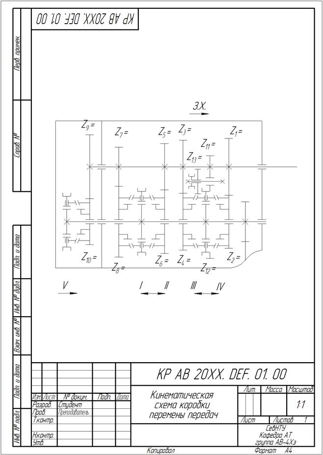 Рисунок А.1 – Пример выполнения кинематической схемы КПП заднеприводного автомобиля