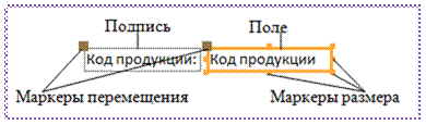Элементы управления есть связанные и несвязанные. Связанный элемент управления присоединен к полю базовой таблицы или запроса. Такие элементы управления используются для просмотра, ввода или редактирования значений из полей БД. Ввод связанного элемента управления в проект формы осуществляется путем перетаскивания из окна со списком полей нужного поля в раздел Область данных. В результате появляются два прямоугольника – подпись поля и поле. Например: