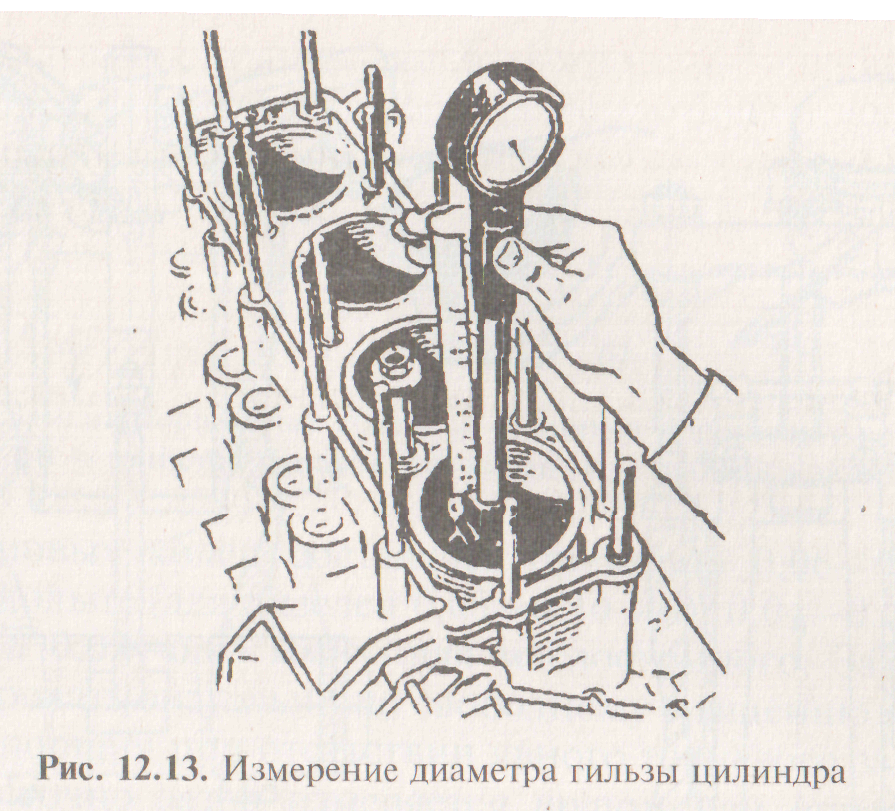 Замена цилиндропоршневой группы производится при значительном изнашивании рабочей поверхности цилиндра, появлении задиров, сколов, трещин на зеркале цилиндров, изнашивании верхнего и нижнего посадочных поясков гильзы. Величину износа цилиндров и гильз определяют индикаторным нутромером в перпендикулярных направлениях (одно направление параллельно оси коленчатого вала) по трем поясам. Первый пояс находится в 5-10 мм от верхней полости блока цилиндров, второй - в средней части цилиндра, третий - в 15-20 мм от нижней кромки цилиндра (рис. 12.13). В зависимости от величины износа определяют вид ремонта. Это может быть растачивание до следующего ремонтного размера (для двигателей марки «ВАЗ» их пять — А, В, С, О, Е), каждый больше предыдущего на 0, 01 мм, или запрессовка ремонтных гильз. Цилиндры или вставные гильзы обрабатываются до ремонтных размеров на расточных станках. После растачивания цилиндр или гильзу подвергают хонингованию. Независимо от способа окончательной обработки цилиндров (гильз) их внутренний диаметр должен иметь один и тот же ремонтный размер для данного двигателя.