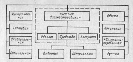 ТЕХНИЧЕСКАЯ ДИАГНОСТИКА АВТОМОБИЛЕЙ Назначение и принципы применения диагностики автомобилей Основные понятия о диагностике. Для повышения эффективности ТО и ремонта автомобилей требуется индивидуальная информация о их техническом состоянии до и после обслуживания или ремонта. При этом необходимо, чтобы получение указанной информации было доступным, не требовало бы разборки агрегатов и механизмов и больших затрат труда. Индивидуальная информация о скрытых и назревающих отказах позволяет предотвратить преждевременный или запоздалый ремонт и профилактику, а также проконтролировать качество выполняемых работ. Средством получения такой информации является техническая диагностика автомобилей. Технической диагностикой называется отрасль знаний, изучающая признаки неисправностей автомобиля, методы, средства и алгоритмы определения его технического состояния без разборки, а также технологию и организацию использования систем диагностирования в процессах технической эксплуатации подвижного состава. Диагностированием называют процесс определения технического состояния объекта без его разборки, по внешним признакам путем измерения, величин, характеризующих его состояние и сопоставления их с нормативами. Оно обеспечивает систему ТО и ремонта автомобилей индивидуальной информацией о их техническом состоянии и, следовательно, является элементом этой системы. Диагностирование данного объекта (автомобиля, агрегата, механизма) осуществляют согласно алгоритму (совокупности последовательных действий), установленному технической документацией. Комплекс, включающий объект, средства и алгоритмы, образует систему диагностирования. Объект системы диагностирования характеризуется необходимостью и возможностью диагностирования. В свою очередь, необходимость диагностирования автомобиля определяется закономерностями изменения его технического состояния и затратами на поддержание работоспособности. Возможности диагностирования обусловлены наличием внешних признаков, позволяющих определить неисправность автомобиля без его разборки, а также доступностью измерения этих признаков. Средствами диагностирования служат специальные приборы и стенды. Они делятся на внешние (отдельные) и встроенные, являющиеся составной частью автомобиля. При диагностировании используют не только измерительные технические средства, но и субъективные возможности человека, его органы чувств, опыт, навыки; в простейших случаях используют субъективное диагностирование, а в сложных — объективное. Системы диагностирования (рис. 4.1) делятся на функциональные, когда диагностирование проводят в процессе работы объекта, и тестовые, когда при измерении диагностических параметров работу объекта воспроизводят искусственно. Различают системы универсальные, предназначенные для нескольких различных диагностических процессов, и специальные, обеспечивающие только один диагностический процесс. Диагностические системы могут быть общие, когда объектом является изделие в целом, а назначением — определение его состояния на уровне «годно-негодно» и локальные — для диагностирования составных частей объекта (агрегатов, систем, механизмов). Кроме того, диагностические средства могут быть ручными или автоматизированными (автоматическими)